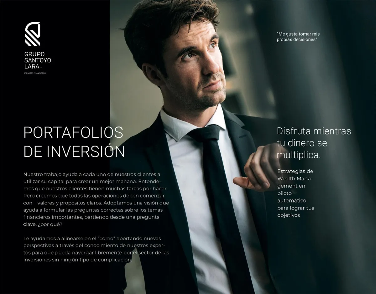 ¿Buscas una firma de inversión que realmente entienda tus necesidades y te guíe hacia un futuro financiero seguro? Descubre por qué Grupo Santoyo Lara es la elección preferida para quienes buscan crecer su patrimonio con confianza y estrategia. Únete a nosotros y forma parte de una comunidad que valora la transparencia, la personalización y el éxito financiero.