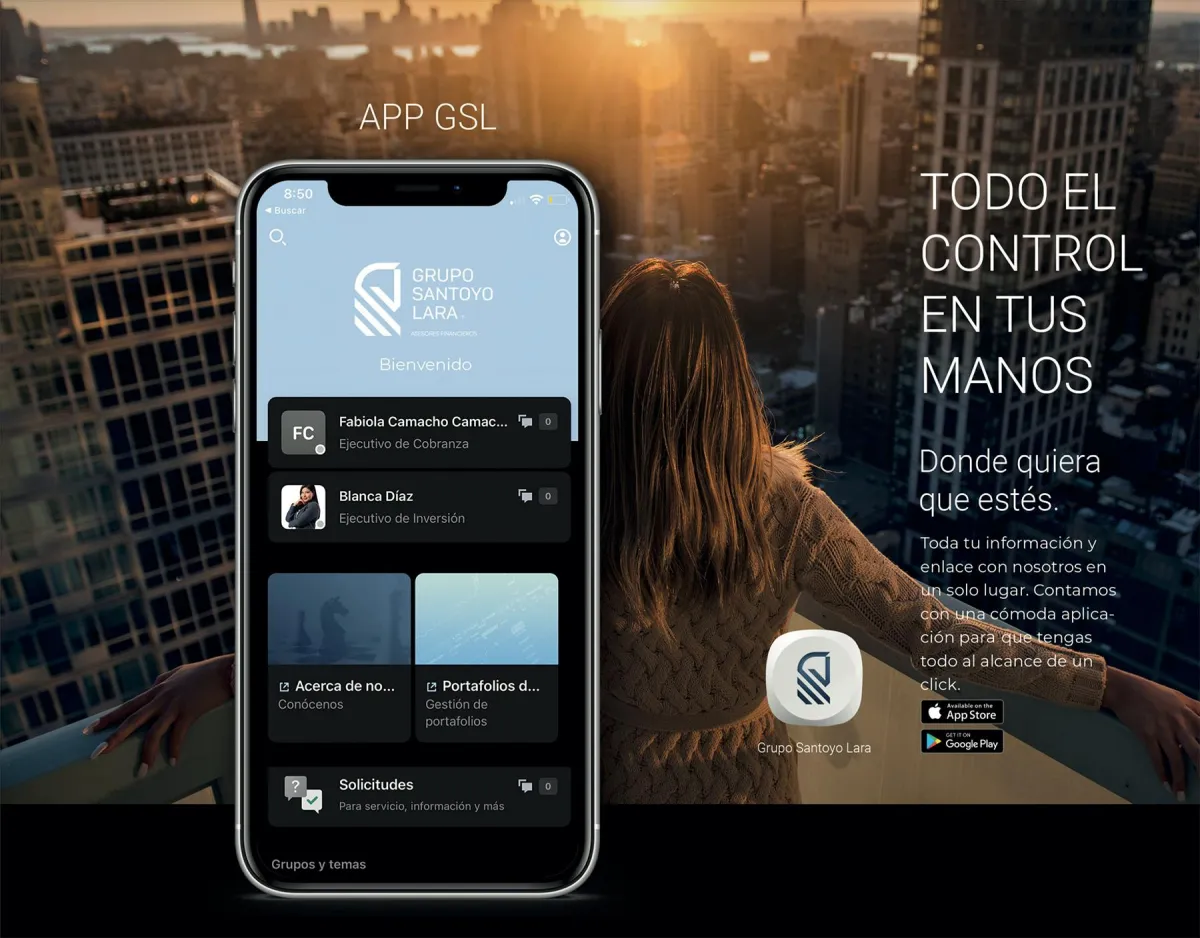 Con Grupo Santoyo Lara, el control de tus inversiones está siempre al alcance de tu mano gracias a nuestra app. Ya no necesitas preocuparte por perder de vista tus finanzas; nuestra aplicación te permite monitorear y gestionar tus inversiones en tiempo real, sin importar dónde estés.